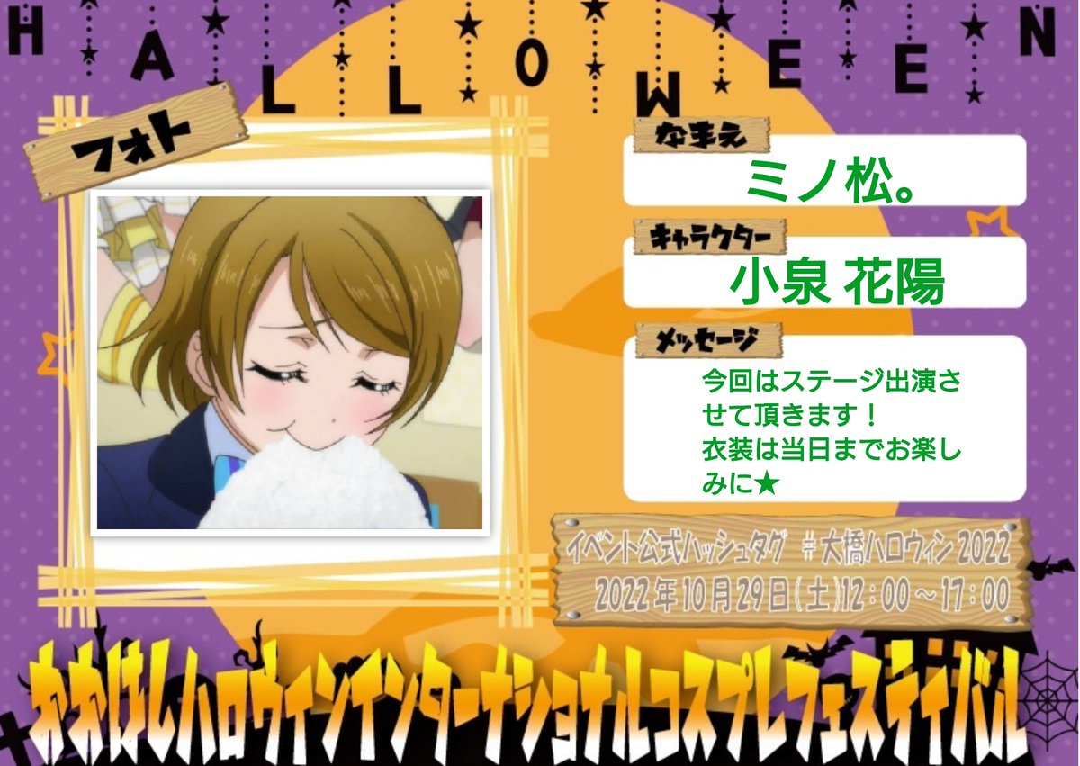 #大橋ハロウィンインターナショナルコスプレフェス ステージ(14:45〰)では、矢澤にこで、あの曲を踊ります❣️ みなさんを笑顔にした後は、父で夜の街に繰り出すぜ‼️ 📸@sonjin4545 📸@taka_m_65