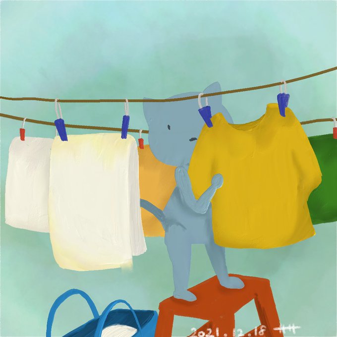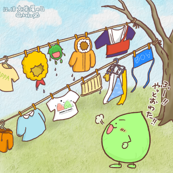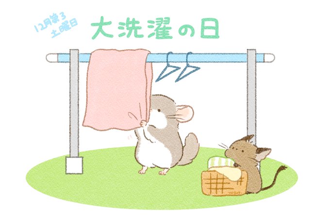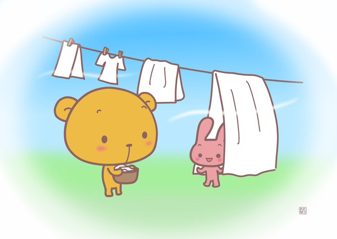 【毎日投稿*今日は何の日?】 12月18日は大洗濯の日♪ (12月第三土曜日) ぽかぽか、お洗濯日和🧸☀️ #大洗濯の日 #イラスト #イラスト好きな人と繋がりたい #絵描きさんと繋がりたい