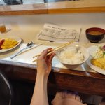 僕がオムライスにしよ、と言ったら蓮子が同じものを頼んだから、コック長にオムレツでしたって言ったの😉 味噌汁うますぎ😋 あと後ろに、京都新聞があってエリザベス女王に目がいってたけど、あの幻のこと書いてたの見逃した…… #コスメル #大津市 twitter.com/orphic_poetr…