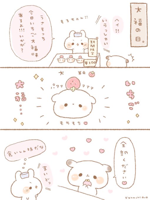 今日は #大福の日 だそうですよ♪ なのでインちゃんときんちゃんの今日のおやつは大福❣️ インちゃんが近くの和菓子屋さんに買いに行ってきました。 わふわふ♪大福と一緒に豆大福も買っちゃいました♪どっちにしますかきんちゃん? みゃふ〜っ!💕(どっちも〜っ!) #イラスト #わふわふみゃふみゃふ