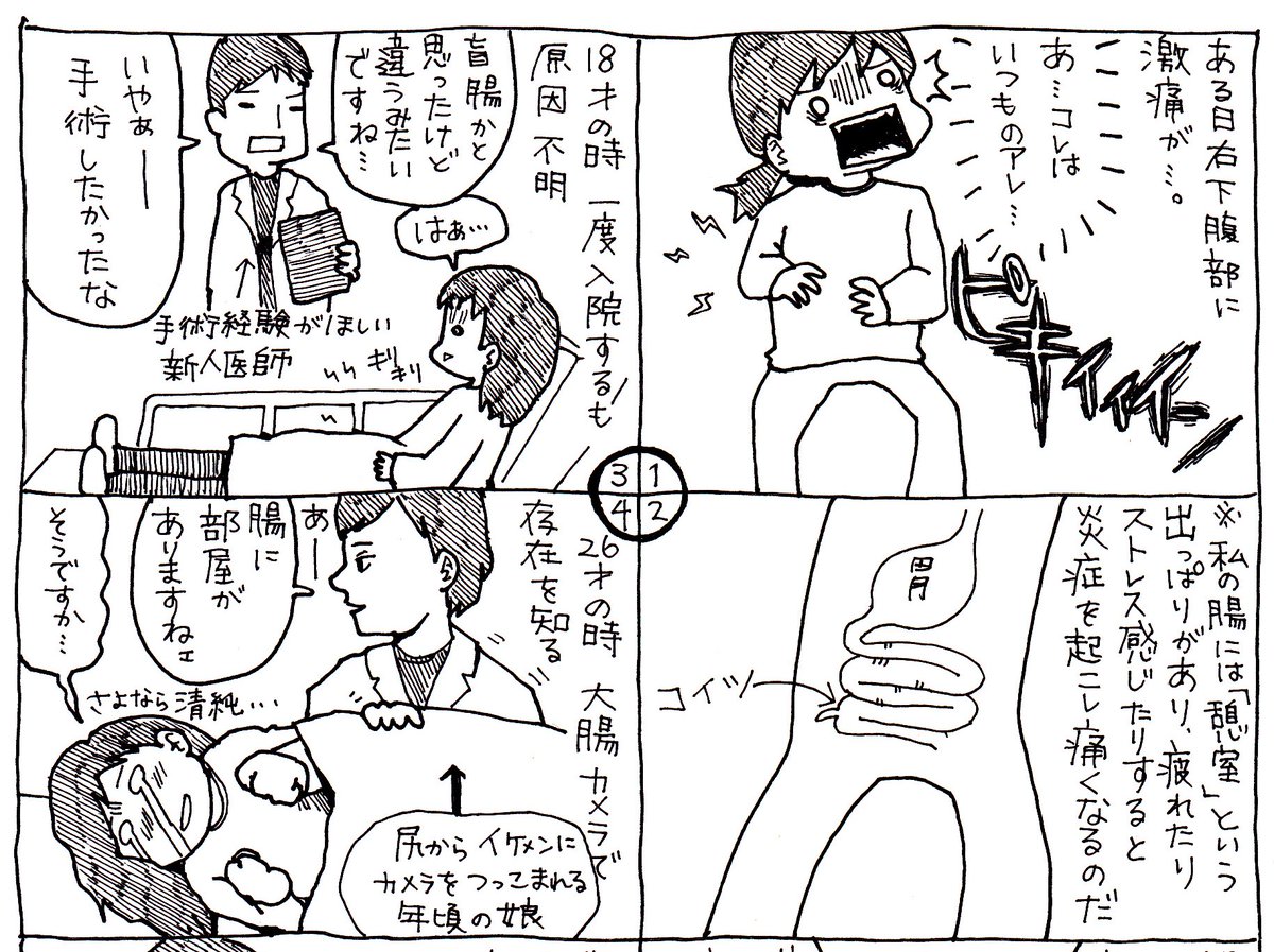 大腸憩室炎で3日間断食した話⑤ 寝てるだけなら平気、押したり歩いたりすると痛い。(これでも軽い方)内蔵の痛みって怖いです。 寝たきりだったときアナログで描いたレポ漫画。 10まで毎日21時更新。 #漫画が読めるハッシュタグ #コルクラボマンガ専科 #アスの毎日絵日記 #大腸憩室炎