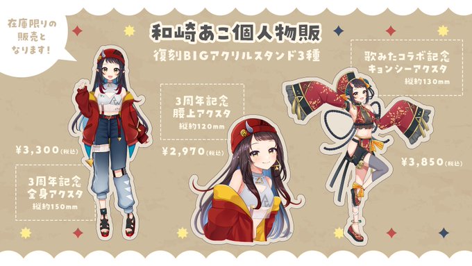 🌞和崎あこ個人物販🍄 @ TSUTAYA EBISUBASHI店 なんと!💥 BIGアクリルスタンド3種が在庫限りで復刻🎊❤ 過去に期間限定で出たアイテムが 手に入るビッグチャンス✨ お見逃しなく~~!👀 店頭に並ぶタイミングで またお知らせするね~!📣✨ #和崎あこ #鳳神和花 #大阪ツタヤ絵師展V