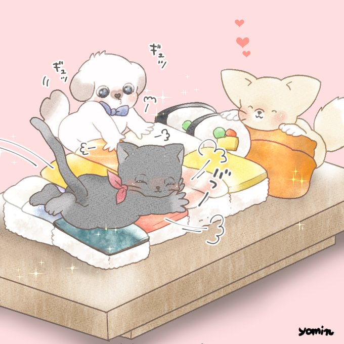 【ぷくりいぬ】9/15 #大阪寿司の日 おはよー☀️ 今日は押し寿司が中心の大阪寿司の日🍣なんだって! 一生懸命押さなくちゃ🐶💦 ヴィンスくん、横着しないっ 一個ずつ押さなくちゃ〜 #イラスト #絵描きさんと繋がりたい #イラスト好きさんと繋がりたい #ゆるいイラスト #illustration #今日は何の日