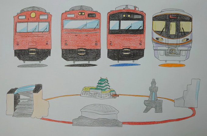 #絵描きさんと繋がりたい #イラスト #アナログ #デフォルメ絵を流してデフォルメ民を増やそう #山手線 #大阪環状線 #絵柄が好みって人にフォローされたい 東西のぐるぐる周る\環状線×山手線/ 似て非なる路線の個性が面白い!