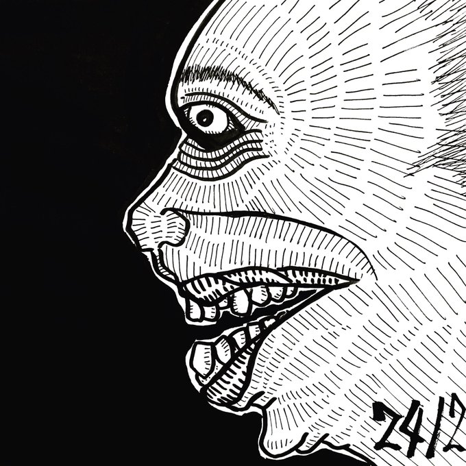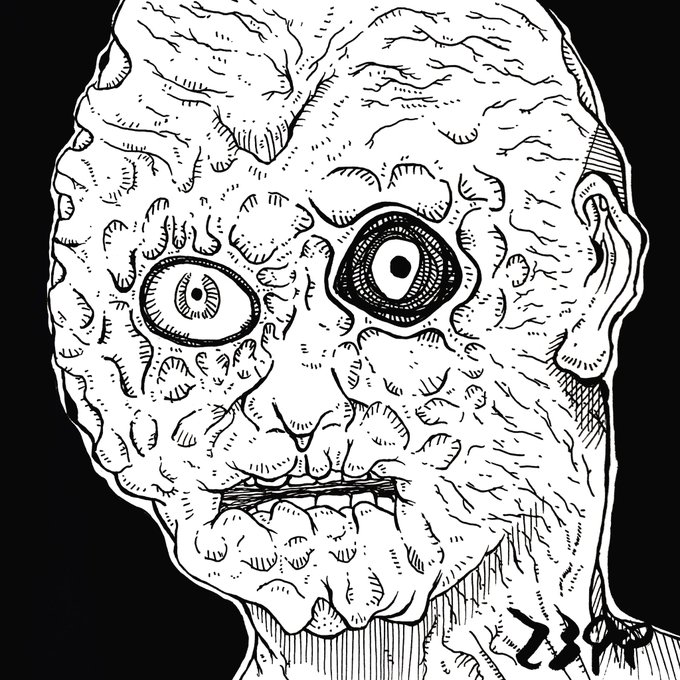 悪夢は巡り、そして終わらないものだろう!ドローイング2407日目 #イラスト #ドローイング #落書き #ペン画 #アート #illustration #drawing #penandink #pen #art #顔絵 #大首絵 #一日一絵 #ペン画を流してペン画民を増やそう #ミコラーシュ #悪夢の主ミコラーシュ #bloodborne #ブラッドボーン