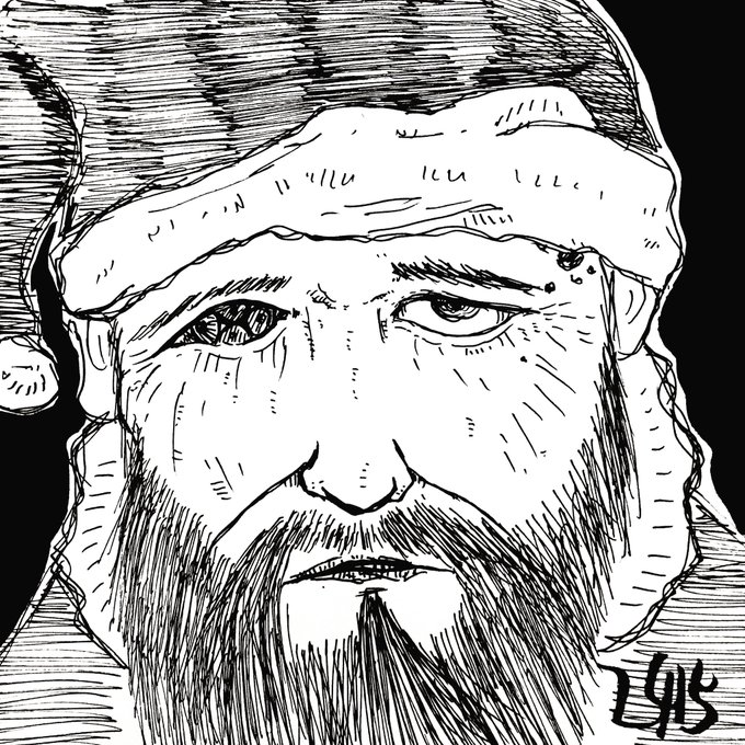ほらほら、ちゃんとサンタさんの目を見ながら(特に右目)何が欲しいか言いなさいドローイング2415日目 #イラスト #ドローイング #落書き #ペン画 #アート #illustration #drawing #penandink #pen #art #顔絵 #大首絵 #一日一絵 #ペン画を流してペン画民を増やそう #サンタクロース #santaclaus