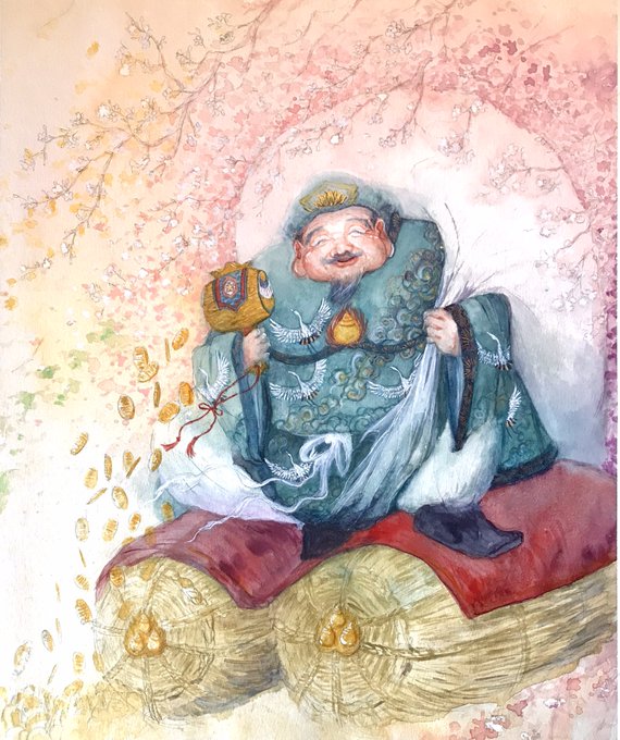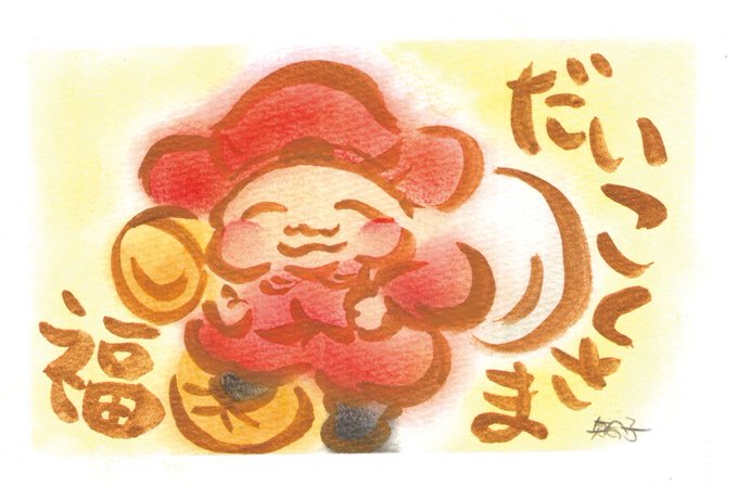 こんにちは✨ WANOEです☆ 大黒 様 (水彩画) F 0号 画用紙・鉛筆・不透明水彩 2022 昨年の10月頃上げたんですが スキャンしたので再掲載✨ すべての人に等しく幸せを🔔🌈✨ #絵描きさんと繋がりたい #大黒様 #水彩画 #イラスト #311これからもできること #クリエイターの力 #幸せな世界