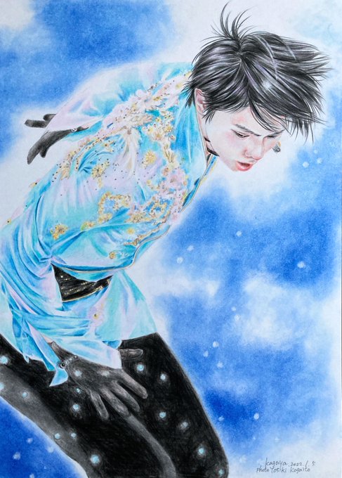 #YuzuruHanyu ポスカプレゼント企画🎁、締切は10日です☺️1/3のツイをご覧ください #天と地と ロンカプさま✨の衝撃に立て続けに描いてしまいましたが、一層艶やかに強くなられた天地さまも描かずにはいられません…💖 #羽生結弦選手が今日も元気で幸せでありますように #色鉛筆画 ↓制作過程続く