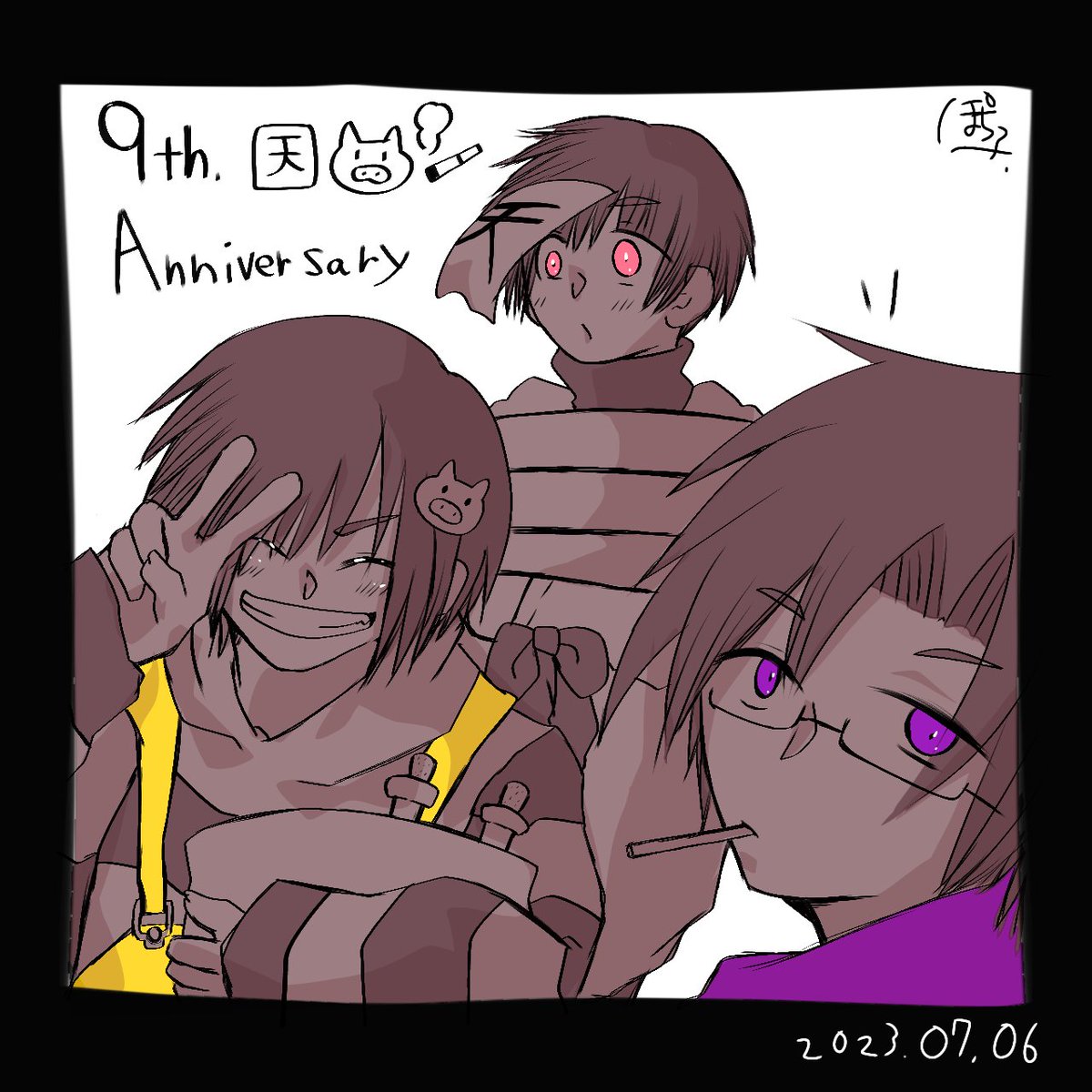 おめでとうございます!! とりあえず5分クオリティー!!! こんなネタ絵で終わらせてたまるか、ちゃんと描くぞ!(笑) #シャオロン9周年記念祭 #ロボロ9周年記念祭 #煽りポメラニアン9周年記念祭 #天の声9周年記念祭 #wrwrdFA