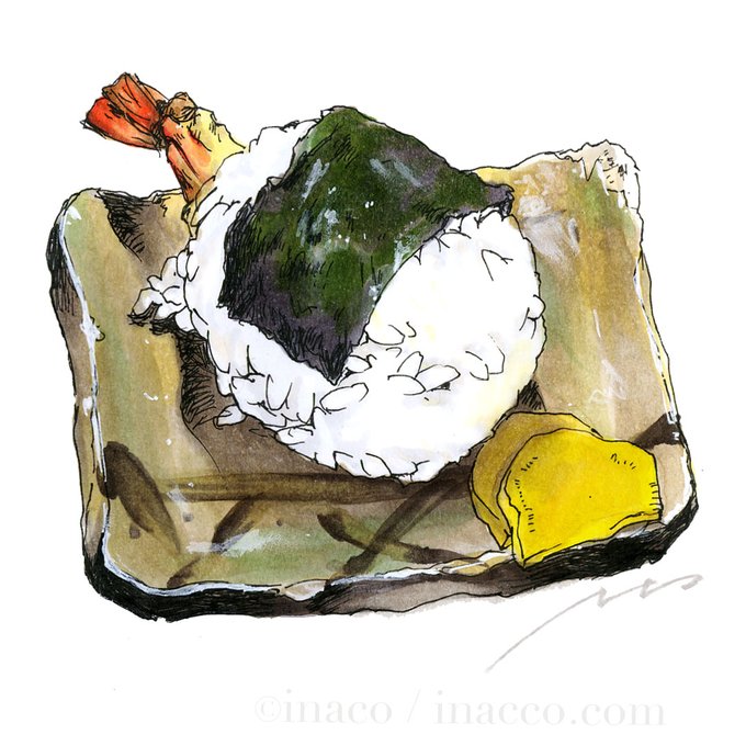 天むすは遠い昔に描いたことがあるなと引っ張り出し。コピック着色だからひょっとして20年以上前の絵かしら…笑 いにしえ…w #foodart #foodpainting #foodillustration #illustratedfood #天むすの日