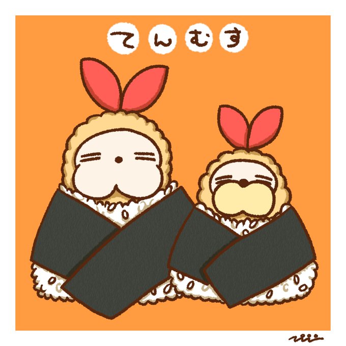 #落書き #イラスト #天むすの日 #イラスト好きさんと繋がりたい #絵描きさんと繫がりたい 落書き第449弾は「天むすっ」です。 今日は天むすの日ということで天むすと「ムスッ」をかけて描きました。