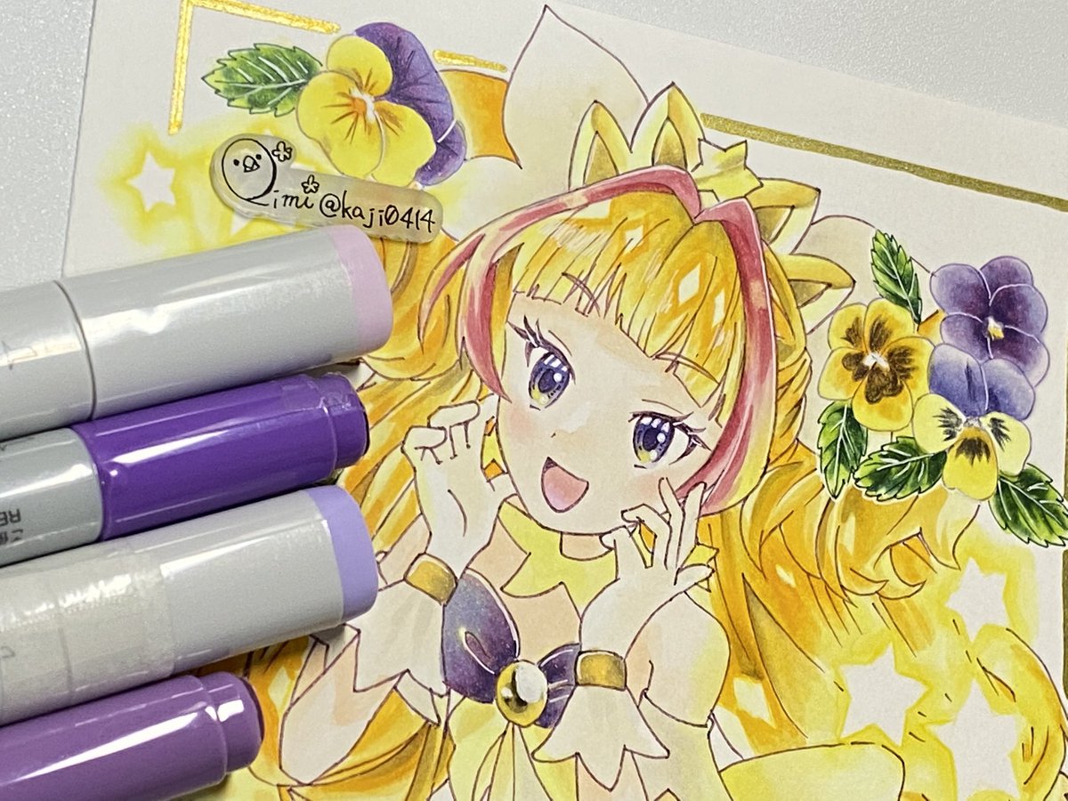 姫プリのキュアトゥインクル描きました💛 #precure #ゴープリ #プリキュア #プリンセスプリキュア #キュアトゥインクル #天ノ川きらら #コピック #アナログ絵を流してアナログ民を増やそう
