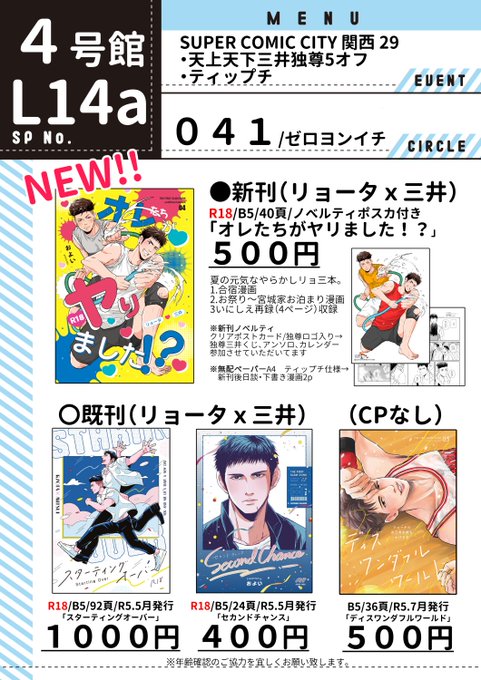 【サークル参加します!!】08月20日(大阪)SUPER COMIC CITY 関西 29内 SUPER COMIC CITY 関西 29| 洋三本出せれるように頑張ります!! 宜しくお願いします✍️ #天上天下三井独尊5オフ