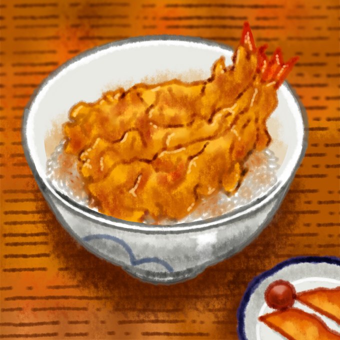 今日のお絵かき 完成 プリンセス #ウタ と #ルフィ #天丼 を食べる ルフィと言えば骨付き肉の印象ですが、海の男なので仲良く魚料理を食べて貰いました( *´艸`) ちなみにルフィの好物は肉全般だそうです😳 #イラスト #illustration #絵描きさんと繋がりたい #art #ONEPIECE #OP_FILMRED