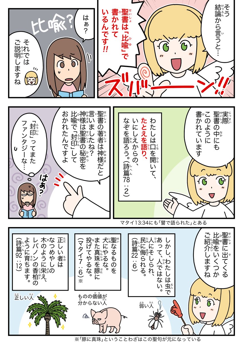 【ゆるく更新中】天使ちゃん聖書学習まんが 第3話「聖書ってどんな本?」 ↓漫画のメイキング動画もあります♪ youtu.be/-RppMJ1H5Rs #漫画 #絵描きさんと繫がりたい #漫画が読めるハッシュタグ #学習まんが #聖書 #天使ちゃん漫画
