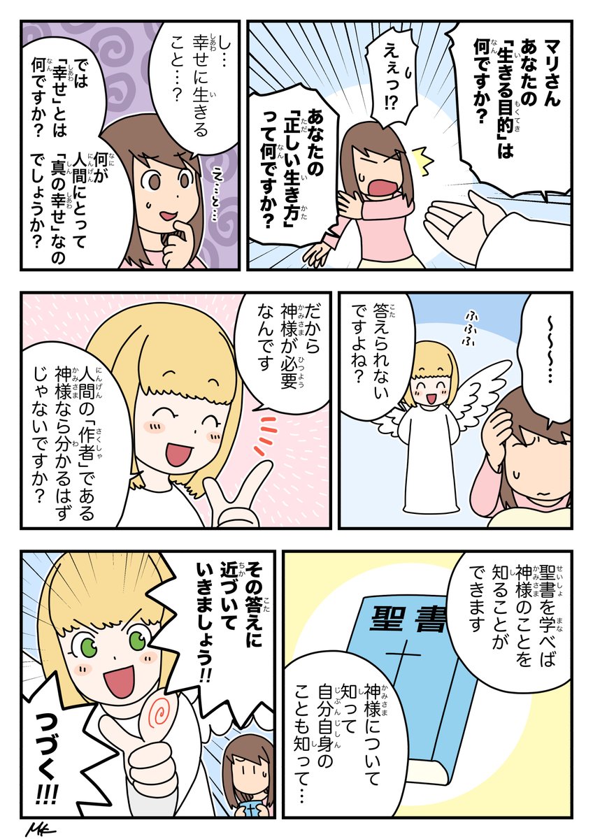 【ゆるく更新中】天使ちゃん聖書学習まんが 第1話「聖書を学ぼう!」 突如現れた天使ちゃんから、大学生のマリちゃんが聖書を学んで(学ばされて?)いく学習まんがです。 #漫画 #絵描きさんと繫がりたい #漫画が読めるハッシュタグ #学習まんが #聖書 #天使ちゃん漫画
