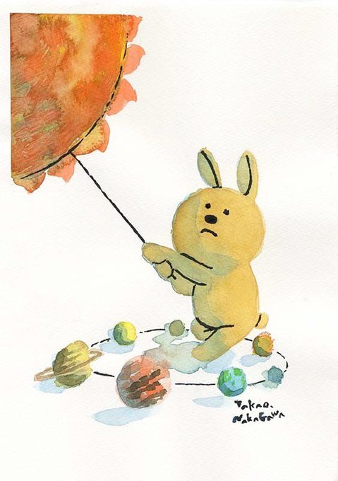 2月19日は「天地の日」だそうです。 地動説を提唱したニコラウス・コペルニクスの誕生日だということで 太陽系の惑星と太陽をハンマー投げのように振り回すウサギを描きました。 #今日は何の日 #天地の日 twitter.com/i/web/status/1…