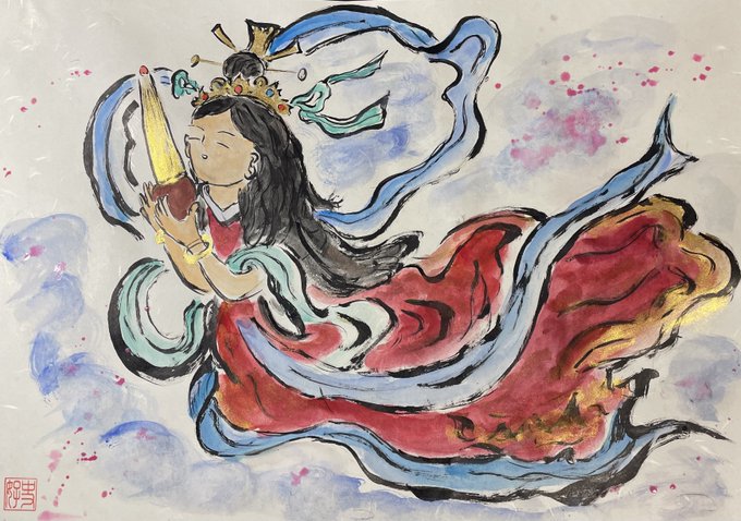 さようなら、あなた。わたしは天へ帰ります。 #落書き #天女 #天人女房 #ラフ画 #digitaldrawing #sketch sketch.pixiv.net/items/77734468…