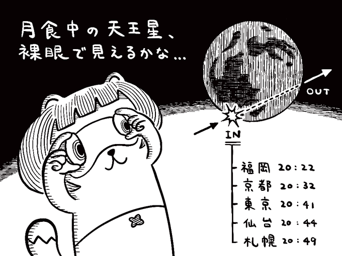 本日は、なんと5000年以上ぶりに、 「#皆既月食」&「#天王星食」が同時に起こる日です! このイメージ図で伝わるかな😁? #イラスト #今日は何の日 #絵描きさんと繋がりたい #イラスト好きさんと繋がりたい #ゆるいイラスト #illustration