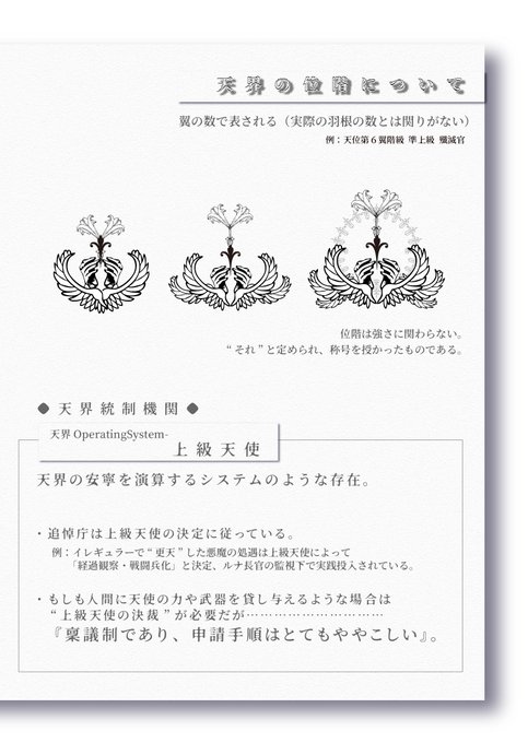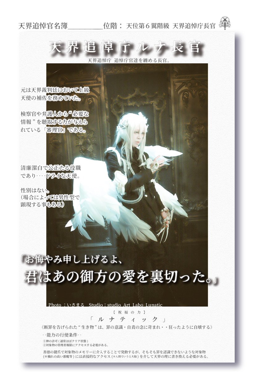 ─────────────── 「‥‥お待ち下さい。 先程の被告人の発言に、虚偽が」 ───創作BOSSキャラ設定─── 【 #天界追悼庁ルナ長官 】 ⚜️悪魔を追悼するために組織された #天界追悼庁 長官であり、かつては天界裁判廷における<審理官>。 清廉潔白で………ドライな天使。