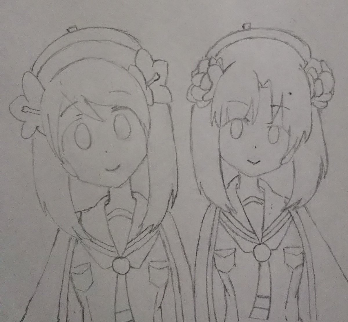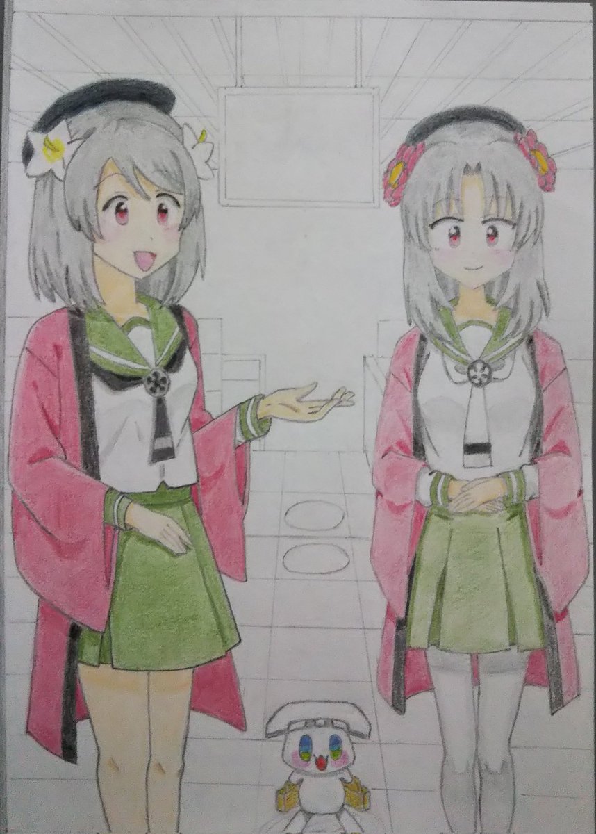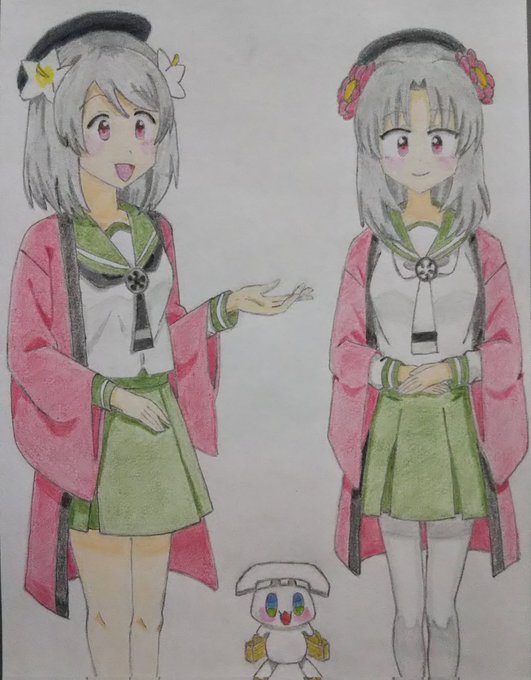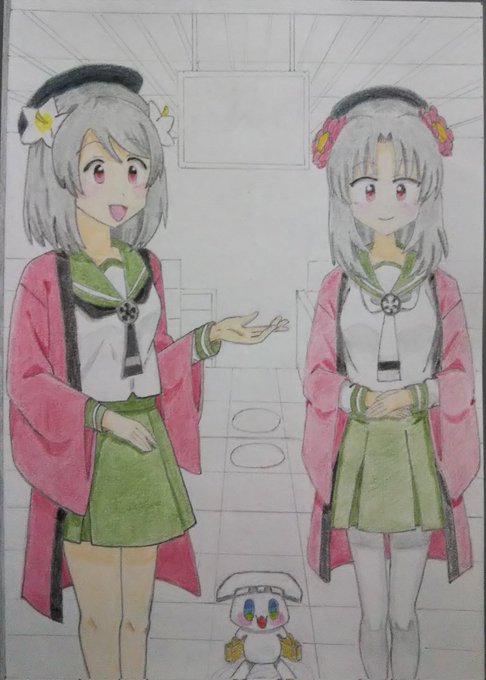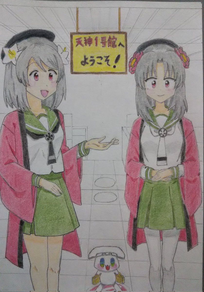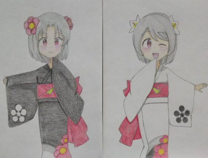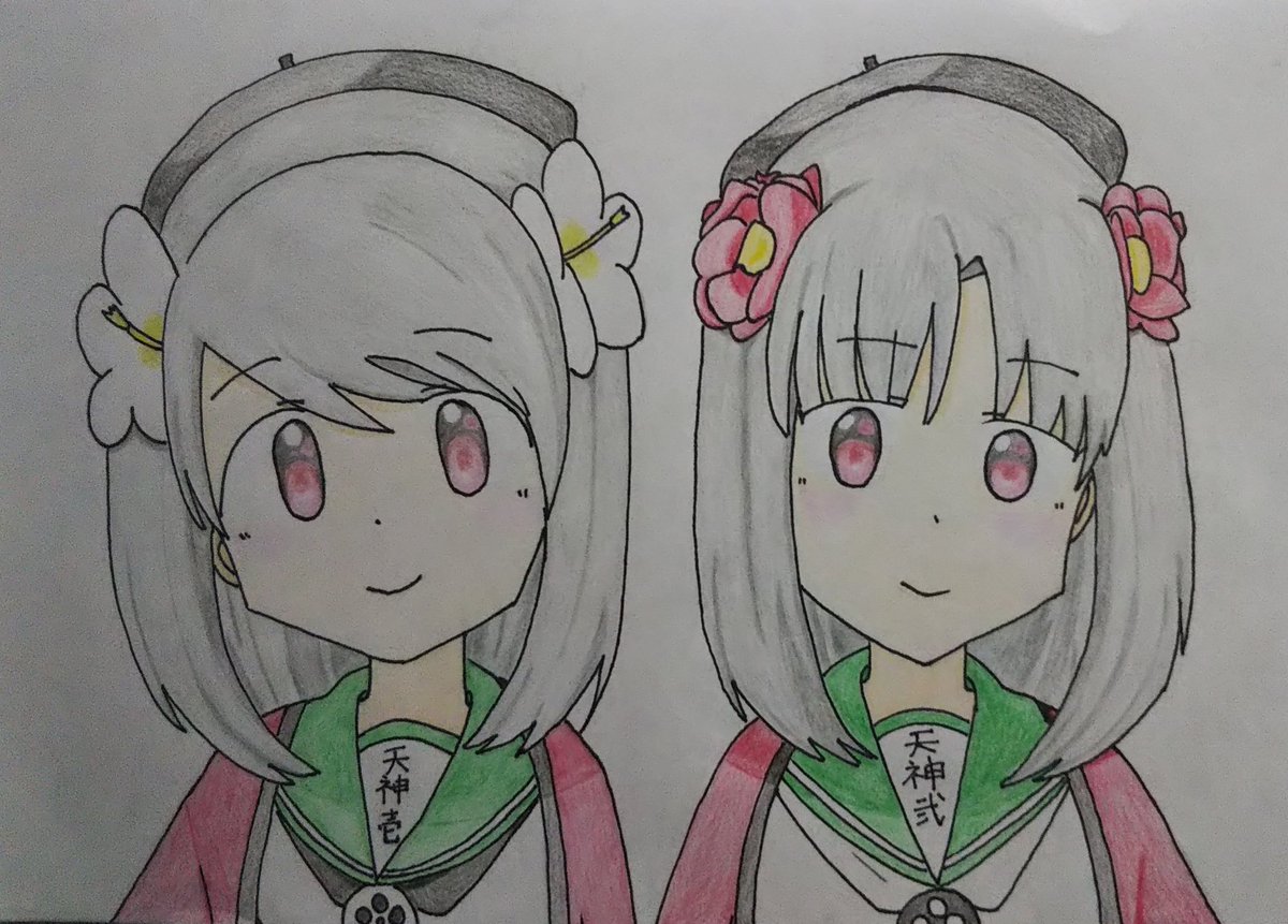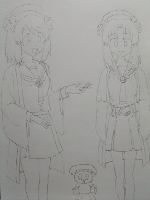 線画描けました。 色塗りは後日で今日はここまで…かな。🐈️ (2枚目は去年の2月末に描いたイラストです) #ホワイトデーは銀髪白髪を愛でる日 (銀髪でいいんですよね?) #天神1号たん #天神2号たん #天神ツインズ #ビッカメ娘 ( #ナイセン ) #ビッカメ娘を描き隊
