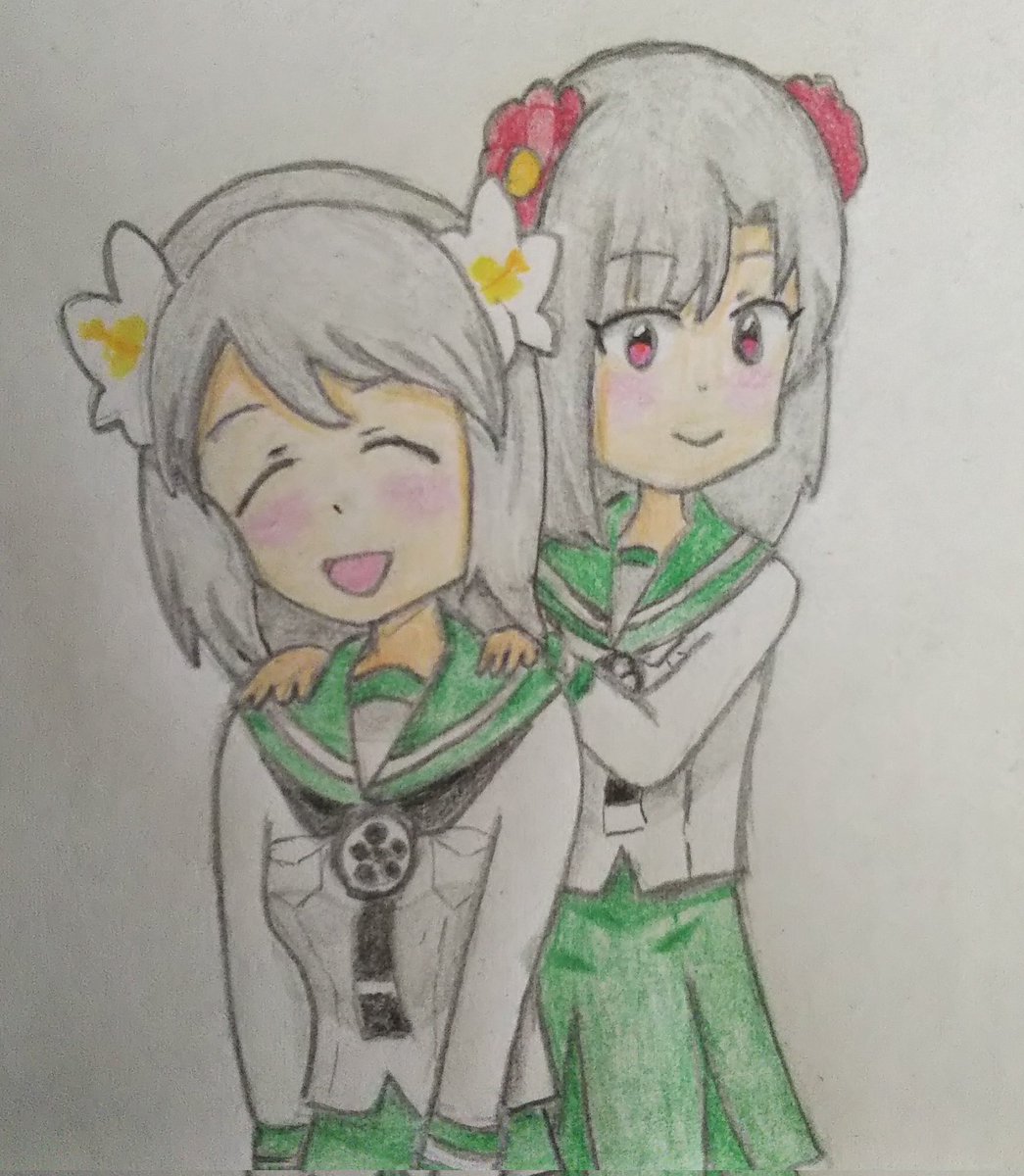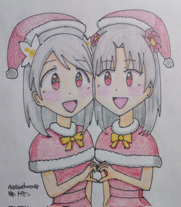 ビッカメ娘の双子姉妹、 #天神1号たん 、#天神2号たん 描きましたー!(*≧∇≦)ノ🎄✨🎁✨🐈️ 「メリークリスマス!🎉」 #クリスマスイラスト #天神ツインズ #ビッカメ娘 ( #ナイセン ) #ビッカメ娘を描き隊 #ファンアート #色鉛筆 #絵描きさんと繫がりたい