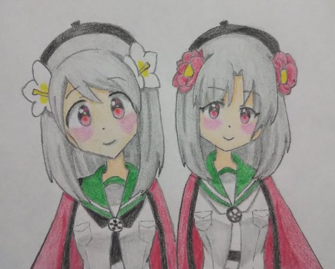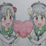 #バレンタインイラスト ⑦❤️🍫🐈️ 天神姉妹を描きましたー!(*≧∇≦)ノ🍫🐈️ 「ハッピーバレンタイン!」 #天神2号たん #天神1号たん #ビッカメ娘 ( #ナイセン ) #ビッカメ娘を描き隊 #ファンアート #色鉛筆 #絵描きさんと繋がりたい