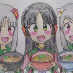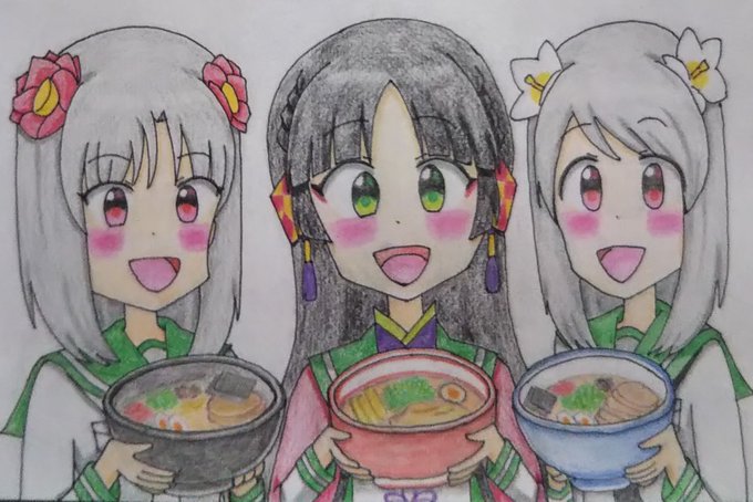 #春の京都たんイラスト祭り 「はい、ラーメン召し上がれ!🍜🍜🍜 🐈️」 美味しそうなラーメンを作ってくれました! #再掲 #京都たん #天神2号たん #天神1号たん #ビッカメ娘 ( #ナイセン ) #ビッカメ娘を描き隊 #ファンアート #色鉛筆 #絵描きさんと繫がりたい
