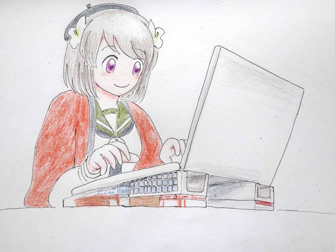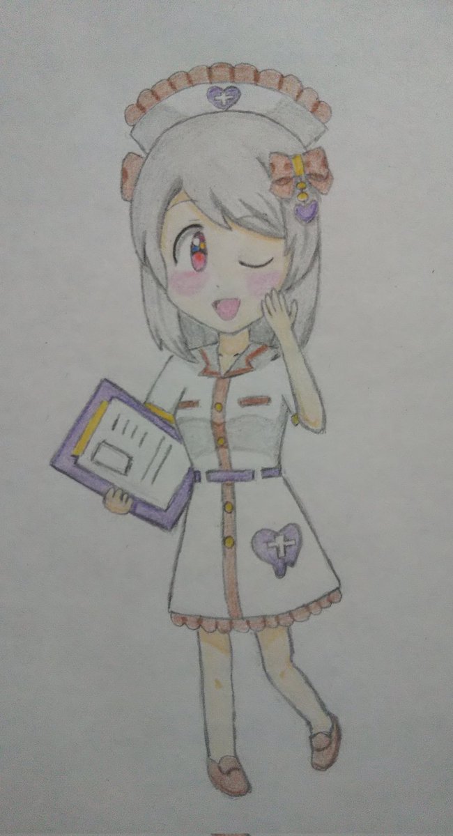 新しくできた等身大パネルの #天神1号たん 描きましたー! 1号たん、等身大パネル設置おめでとう!!🎉(*≧∇≦)ノ🎂✨🎁✨🐈️🐈️ #ビッカメ娘 ( #ナイセン ) #ビッカメ娘を描き隊 #模写 #色鉛筆 #絵描きさんと繋がりたい