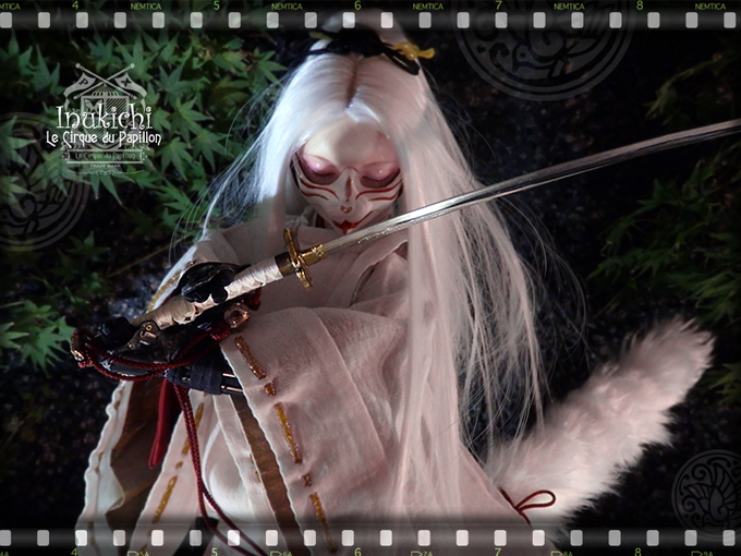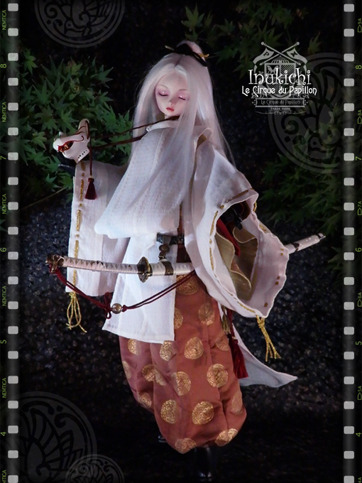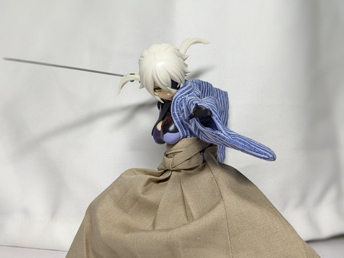 #今夜のドール撮影120分一本勝負 11/14のお題【カラーイメージ:『しろ』】 [過去][既出]trico07.blog105.fc2.com/blog-entry-581… #handmade #miniature #superdollfie #日本刀 #太刀 #剣客小町 #武装ドール #銘犬吉