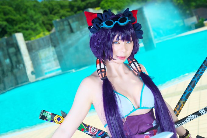 【cosplay】 アイドルマスターシンデレラガールズ 朱夏の果実 速水奏 誰の目も気にせずに過ごすひと時も、アイドルに必要なものでしょう? 撮影: @momme12 #鴨コス #太陽が丘ファミリープール