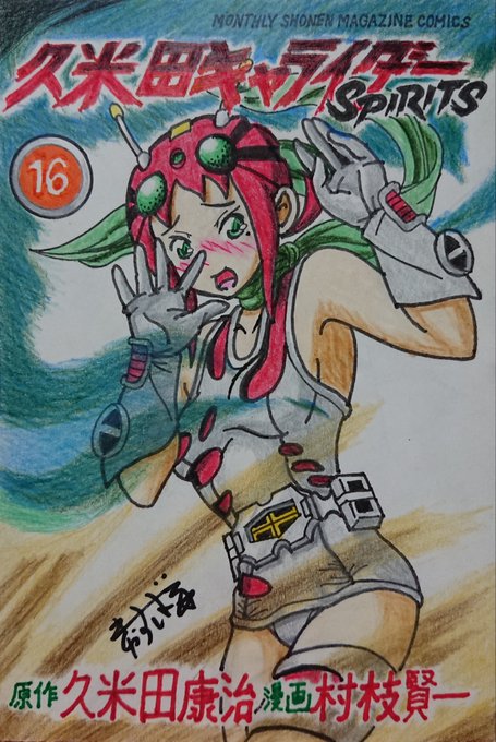#久米田キャライダーズ 『仮面ライダーSPIRITS』16巻表紙・ZXのパロで加賀愛さん、アマゾンのパロでポカポカ、仮面ライダー・カード風にストロンガーのパロで新井智恵先生、ショッカー戦闘員のパロで音無芽留さん。 #さよなら絶望先生 #太陽の戦士ポカポカ #久米田康治ファンアート