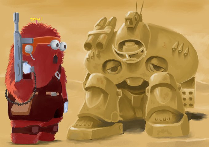 本日は「#太陽の牙 ダグラム」最終回放送記念日 ムック「鉄の腕は無え、緑の体は色を失い 埋もれた砲は二度と火を噴く事はない 緑の戦士は死んだのだですぞ」 #過去絵を投げて絵を描いた気になろうキャンペーン