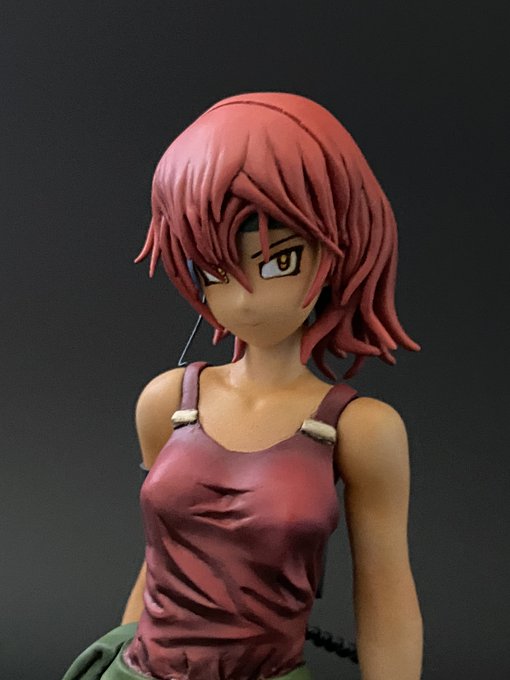 #今月作ったプラモ晒そうぜ 1/12素材ちゃんMを使い #太陽の牙ダグラム デロイア7の紅一点キャラ #キャナリー・ドネット を作りました! (顔は製作者の特権で自分好みに…) 小型Eガンなどのアイテム類は全てスクラッチしました✨
