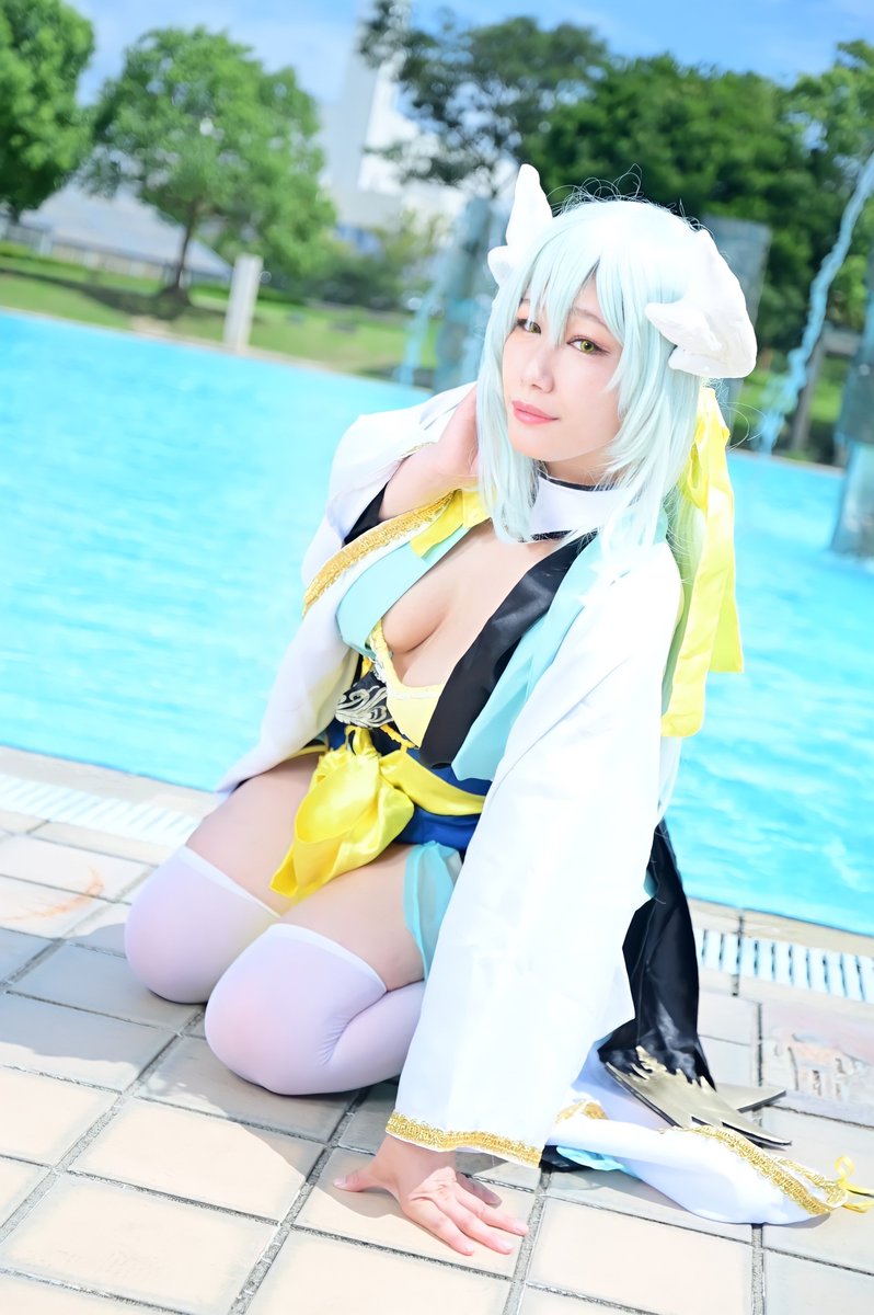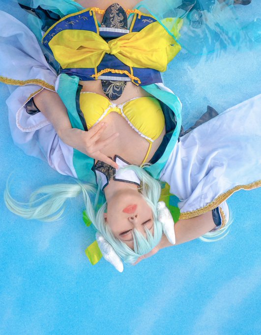 おはようございます 夜10時から爆睡をかまして7時に目覚めたのにまだ眠たい私です。 よく寝る子は育つ…よね? #コスプレ FGO/水着ジャンヌダルク Photoはっさく。様 #鴨コス #太陽ヶ丘ファミリープール