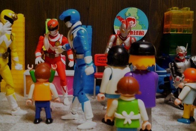 #おもちゃ撮影会 お題「if 3」 「もし、今から40年前に特撮ヒーローの握手会イベントが有ったら…」 と言うシチュエーションを、ミニチュア等を用いて再現。 #ウルトラマン80 #仮面ライダースーパー1 #太陽戦隊サンバルカン