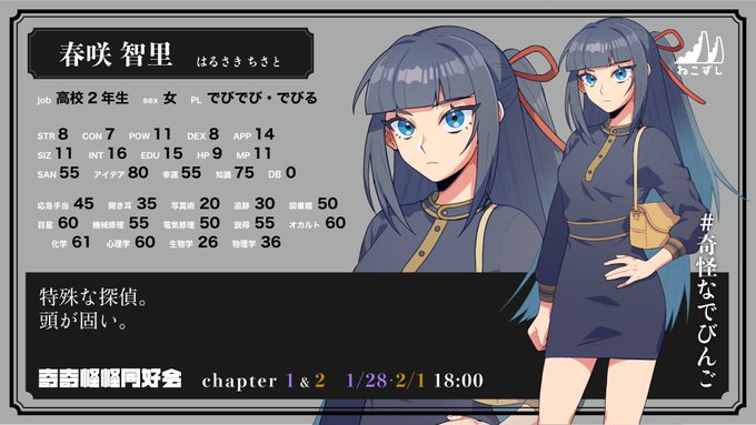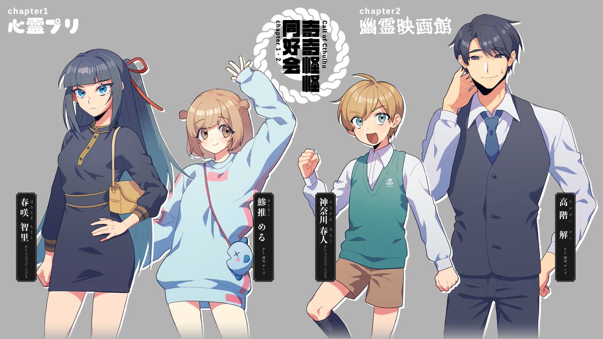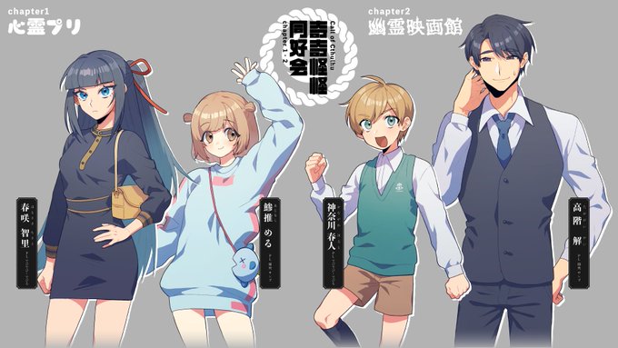 @debidebiru_sama @Suo_Sango 【キャラ紹介】 CH.1: 春咲 智里(@debidebiru_sama) 鯵推 める(@Suo_Sango) CH.2: 神奈川 春人(@debidebiru_sama) 高階 解(@Suo_Sango) 🔻待機所 CH.1 心霊プリ:youtu.be/jGg0vGjT4xQ CH.2 幽霊映画館:youtu.be/cMJiv1h3CjM #奇怪なでびんご