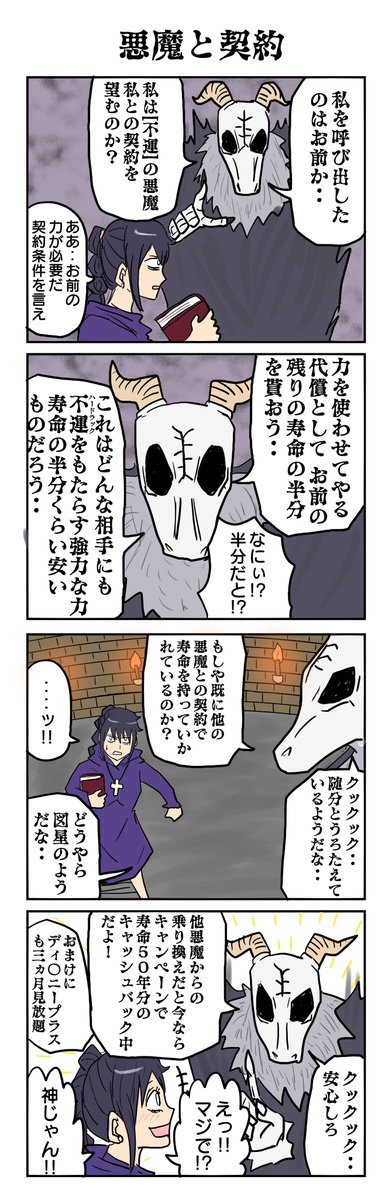こんばんは! 今時は冷えますねえ 今週も風邪に気をつけて参りたいです にゃん茶です! 命の水で生き返り! その代わりに縛られます 罪ほろぼしの使者 #漫画が読めるハッシュタグ #イラスト好きな人とつながりたい #にゃん茶 #生き返り #契約