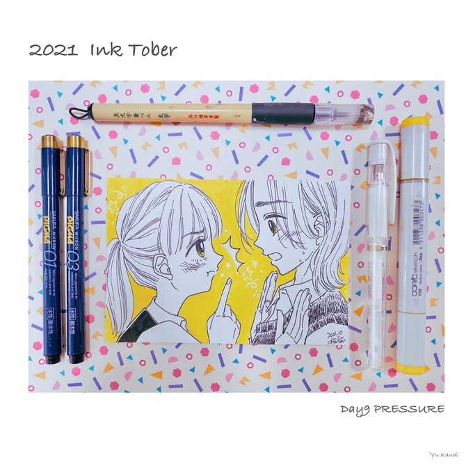 Inktober day.9 pressure 「ねぇ!さっきのなに!!」 「誤解だって〜💦」 人気あるってこともっと自覚してよね。 #inktober #inktober2021 #inktoberday9 #inktober2021day9 #インクトーバー #インクトーバー2021 #女の子と恋のお話