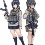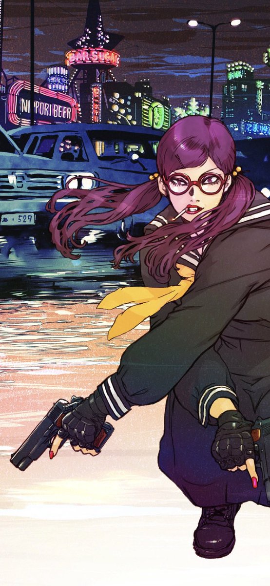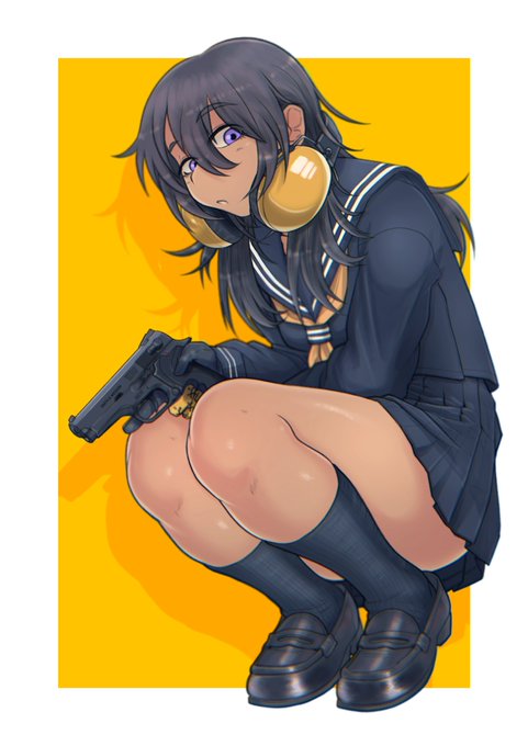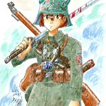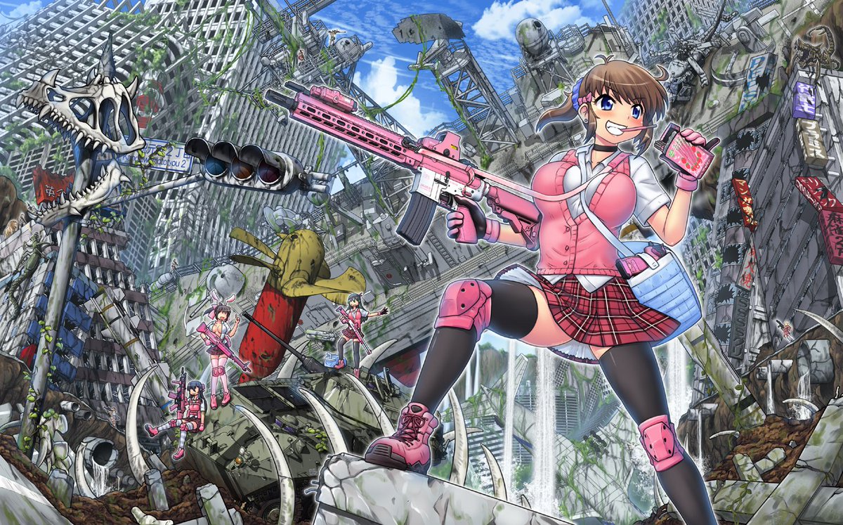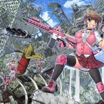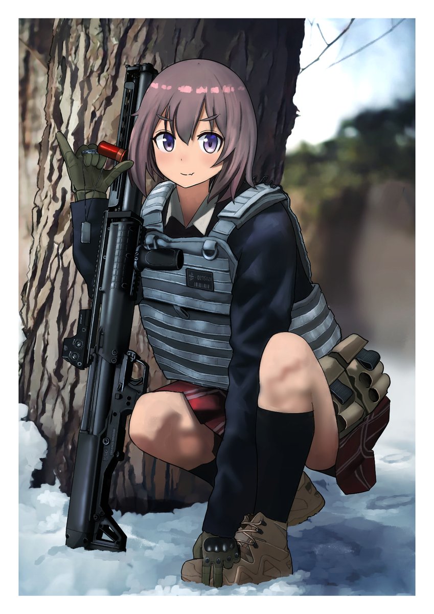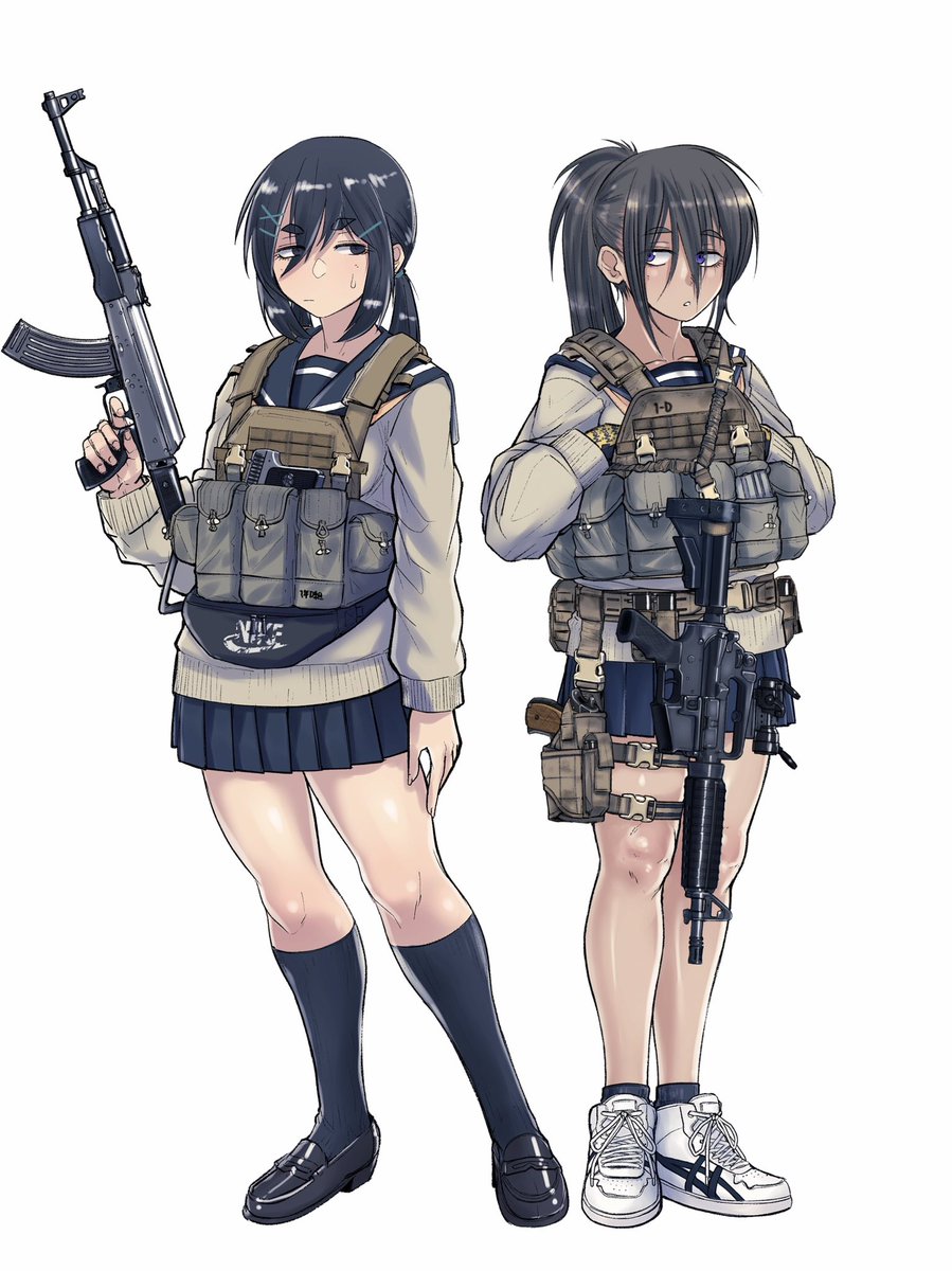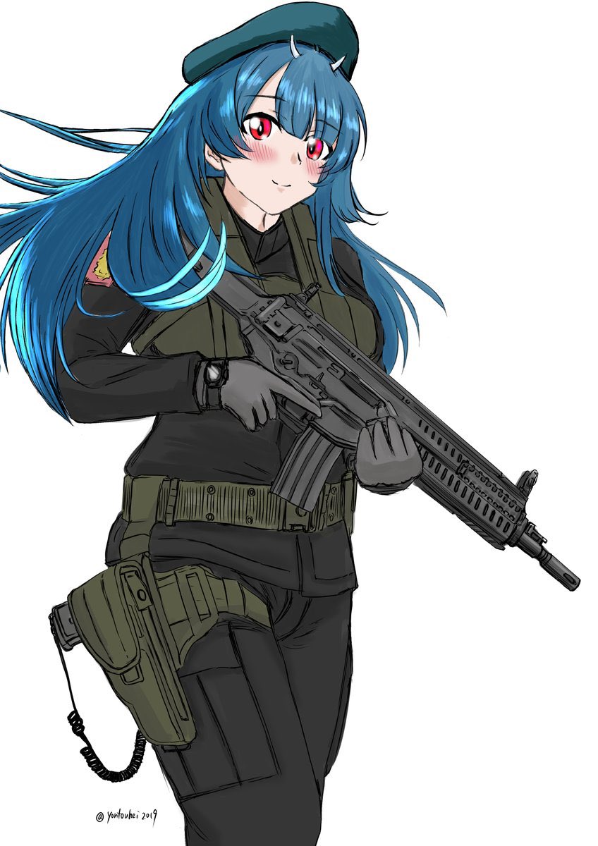 #女の子に銃持たせるの好きゾ 多分発端は漫画版ナウシカとアニメNOIR(ノワール)の影響。 もはや銃というか武装させるのが好き。 持ってるのは刀だけどライフル背負ってるから過去絵再掲。 #イラスト #絵描き