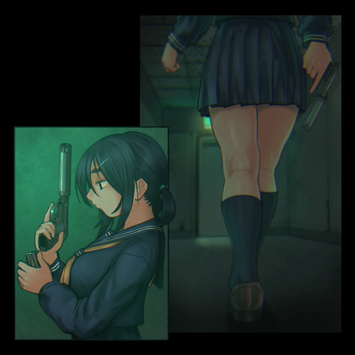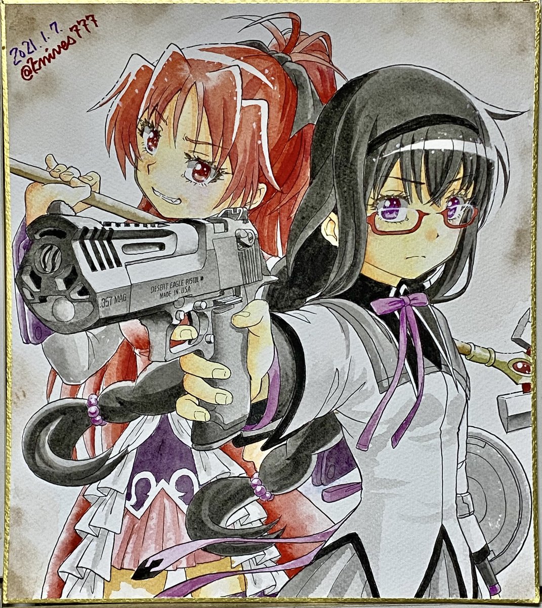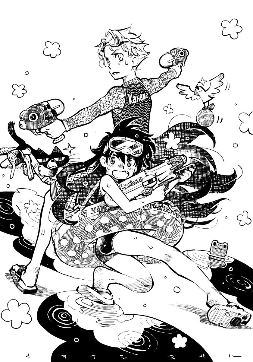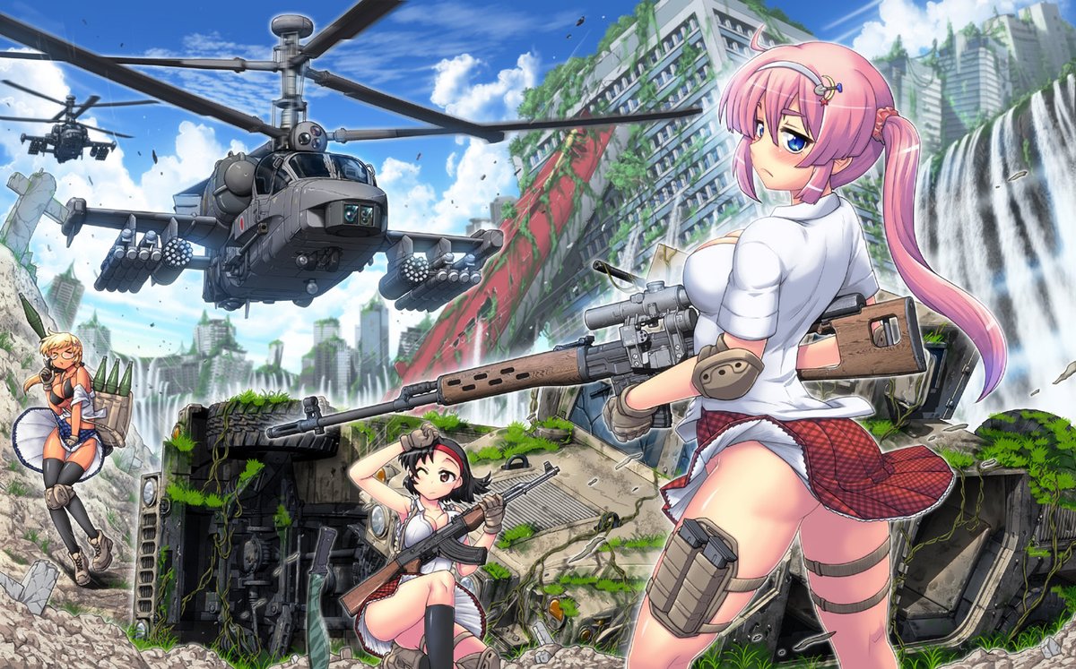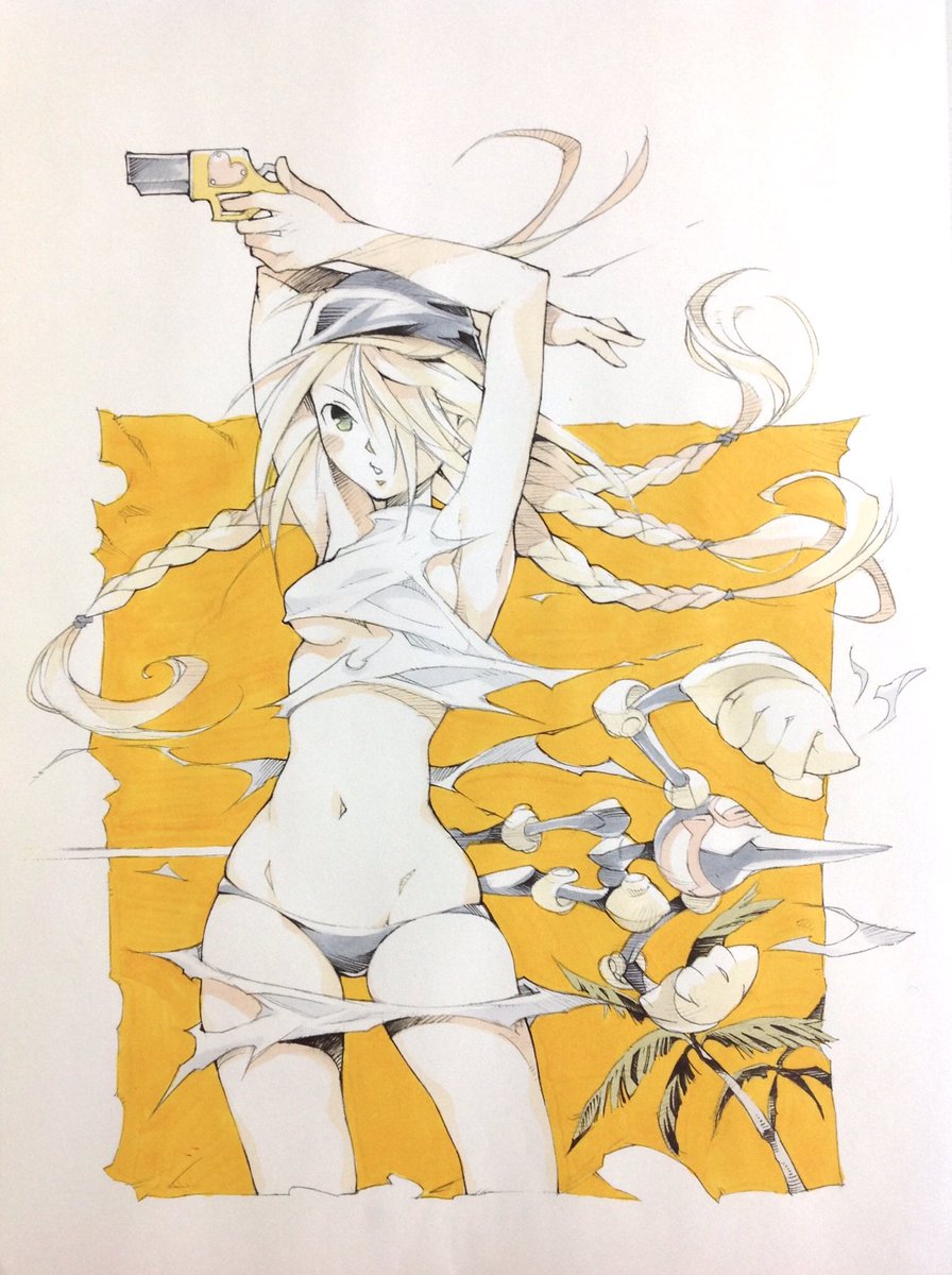 #女の子に銃持たせるの好きゾ 多分発端は漫画版ナウシカとアニメNOIR(ノワール)の影響。 もはや銃というか武装させるのが好き。 持ってるのは刀だけどライフル背負ってるから過去絵再掲。 #イラスト #絵描き