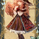 「 くいしんぼう魔女のワンピース 」(背景なし版) トランプやバラをあしらった、 秋色ゴシックロリィタワンピースです。 #ゴスロリ #イラスト #女の子のイラストだけで興味を持ってくれる方へ届け