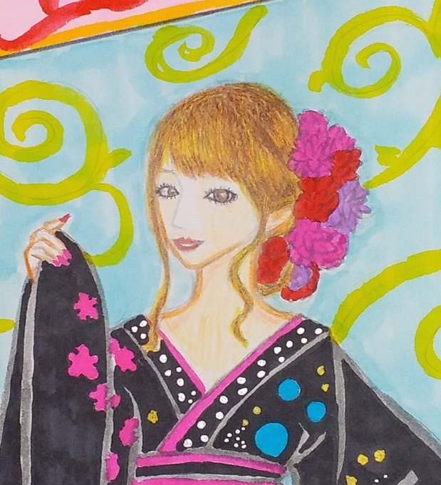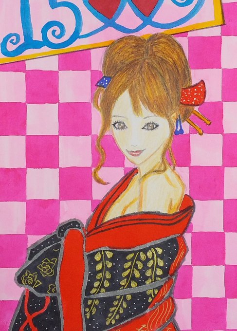 おはようございます🥰☀✨ ◆花魁の女の子 「寒いけど、肩出しちゃえ💕」 #イラスト #アナログ画 #絵描きさんと繋がりたい #みんなで楽しむTwitter展覧会 #女の子のイラストだけで興味を持ってくれる方へ届け