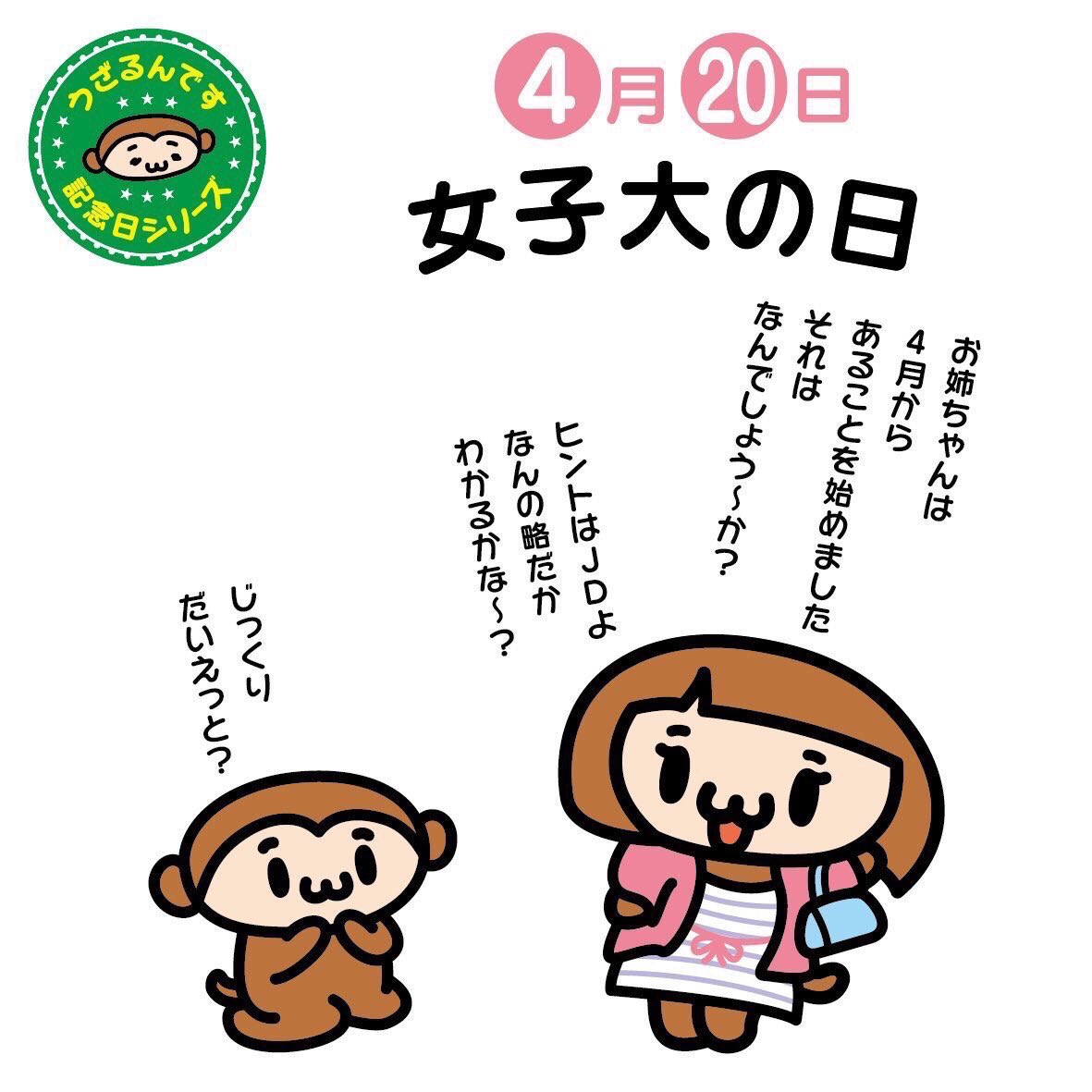 4月20日は女子大の日。1901年に日本初の女子大学、日本女子大学校が開学した日です。この春に入学した新入生は大学生活に慣れましたか?対面授業が多くなって疲れてしまうこともあるかもしれません。でもあせらずじっくりと大学生活を過ごしてくださいね〜 #女子大の日 #イラスト好きな人と繋がりたい
