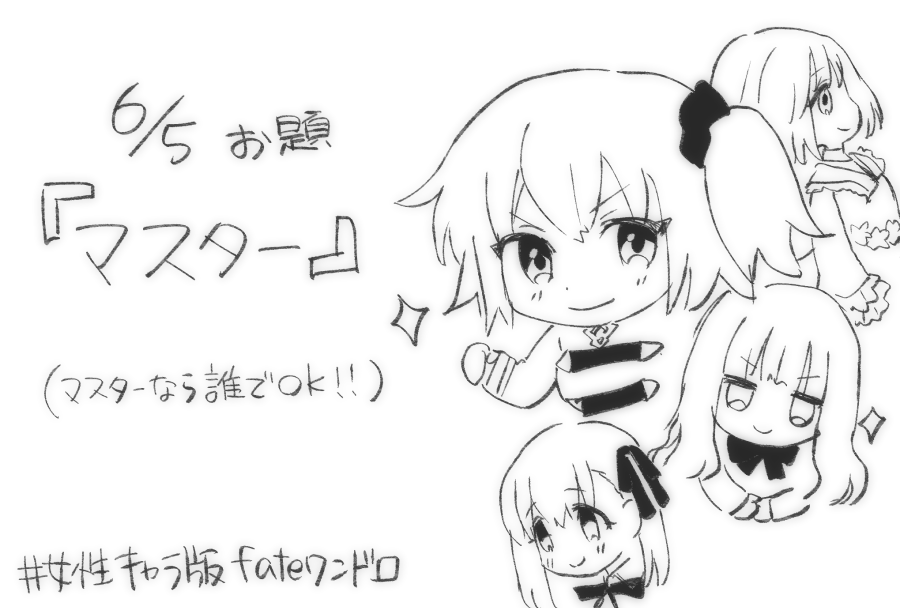 【本日21:30開催!】 お題「マスター」 Fateシリーズなら どのマスターさんでももちろんOKです! 60分で作画、タグをふたつつけてご投稿ください。 ご参加お待ちしております♪ #女性キャラ版fateワンドロ_0605 #女性キャラ版fateワンドロ