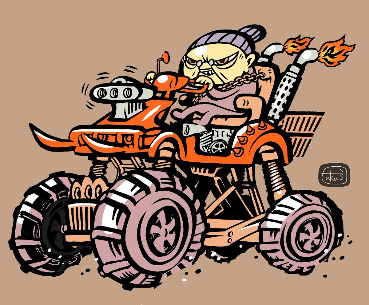 今日は #女性ドライバーの日 です🛵 地元じゃブイブイ言わせている最速三輪車女性ドライバー😄 行く先々の公園でレースを挑む公園荒らしとして有名❗️ みなさんの近所にいるかも… 今日はそんなイラストです♪ #イラスト #illustration