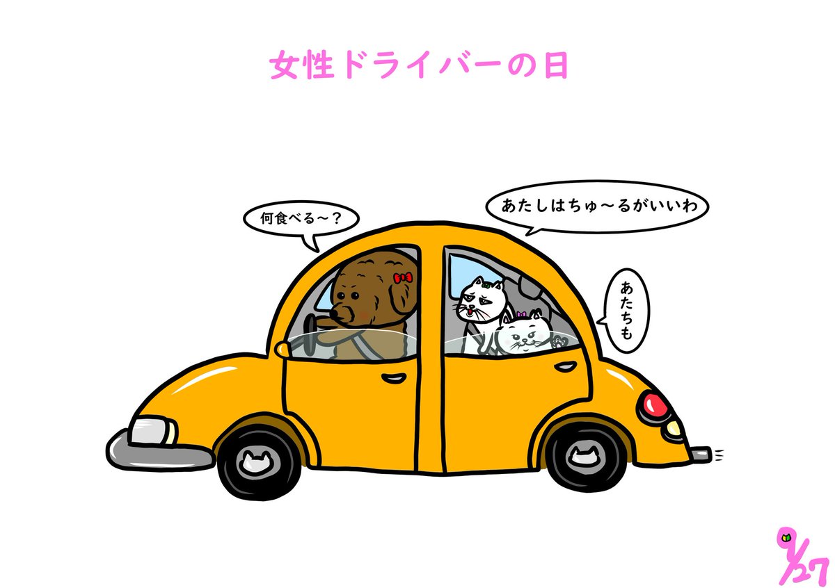 9/27は女性ドライバーの日。 これから紅葉のきれいな季節なのでドライブ行きたいな🍁 ✿LINEスタンプ販売中! 見にきてもらえるとうれしいです❤︎ store.line.me/stickershop/pr… #イラスト #LINEスタンプ #今日は何の日 #女性ドライバーの日 #ドライブいきたい