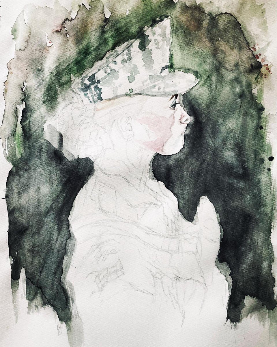 この女性を黙って戦場に送って良いのだろうか… Can you silently send this woman to the battlefield? #art #watercolor #drawing #portrait #femalesoldier #standwithukraine #prayforukraine #stopwarinukraine #水彩画 #アート #現代アート #人物画 #女性兵士 #戦争反対