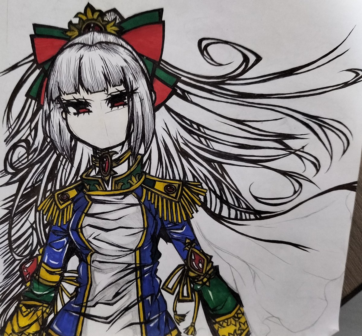 髪の毛ようやく描けた…。 でもこれから髪に線を入れる作業があると思うと気が遠くなる…。 #イラスト #ミリタリー #軍服 #女騎士 #お絵描き #落書き #イラスト好きさんと繋がりたい #絵描きさんと繋がりたい #イラスト好きな人と繋がりたい #オリジナルイラスト #オリキャラ #イラスト初心者