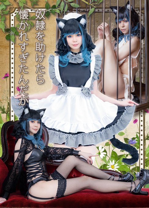 コスホリ新刊写真集の表紙できました! 多分! 少し変わるかもだけど。 奴隷として売られた猫亜人ちゃんを救ってあげて下さい🙏 衣装3種。 まだ全然編集終わってないです😇 これからがんばります🐱 #奴隷になっちゃったので救ってくれますか🐱 #コスホリ